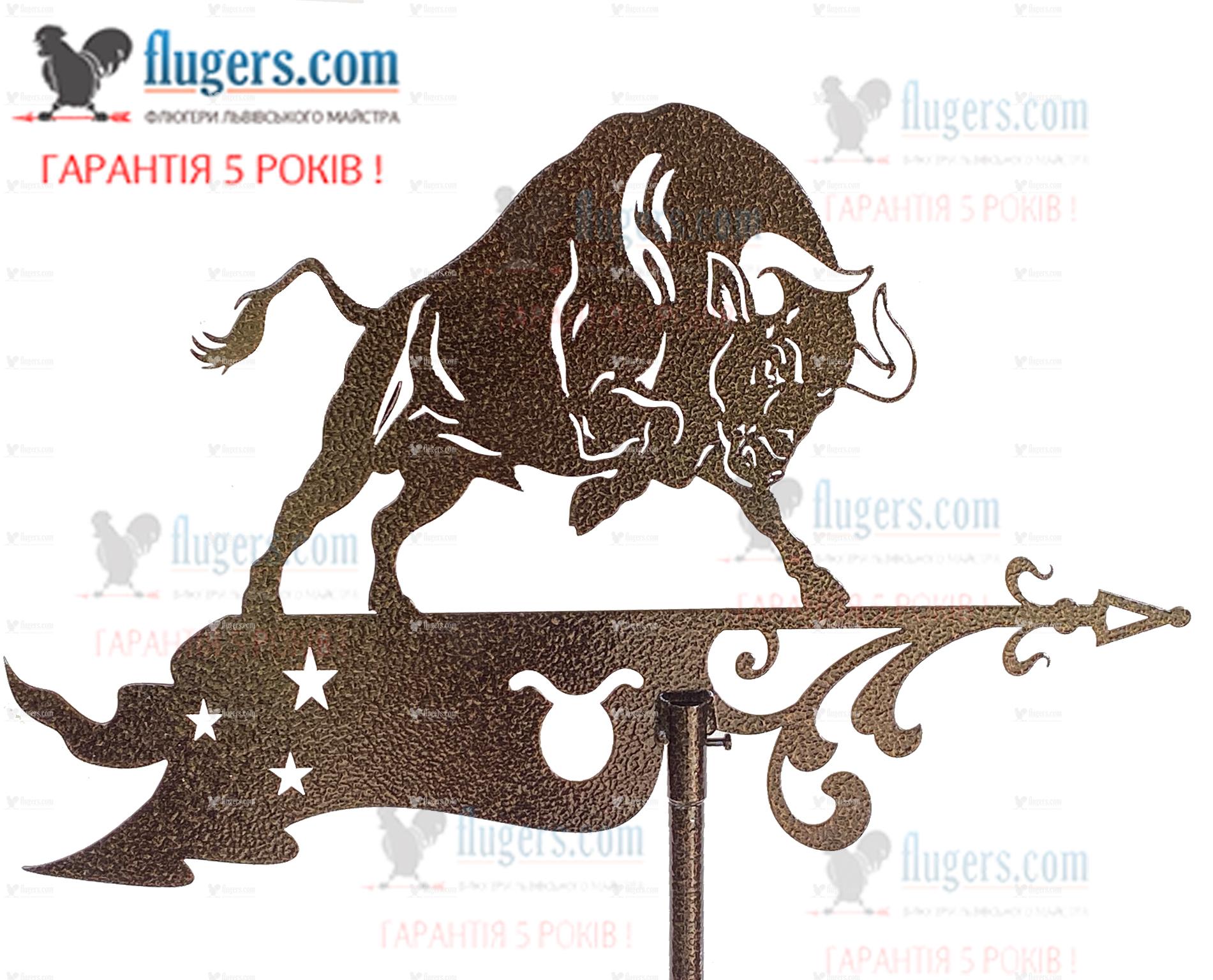 Флюгер на дах Тілець - цей символ свідчить про внутрішню силу і витривалість власника цього флюгера.