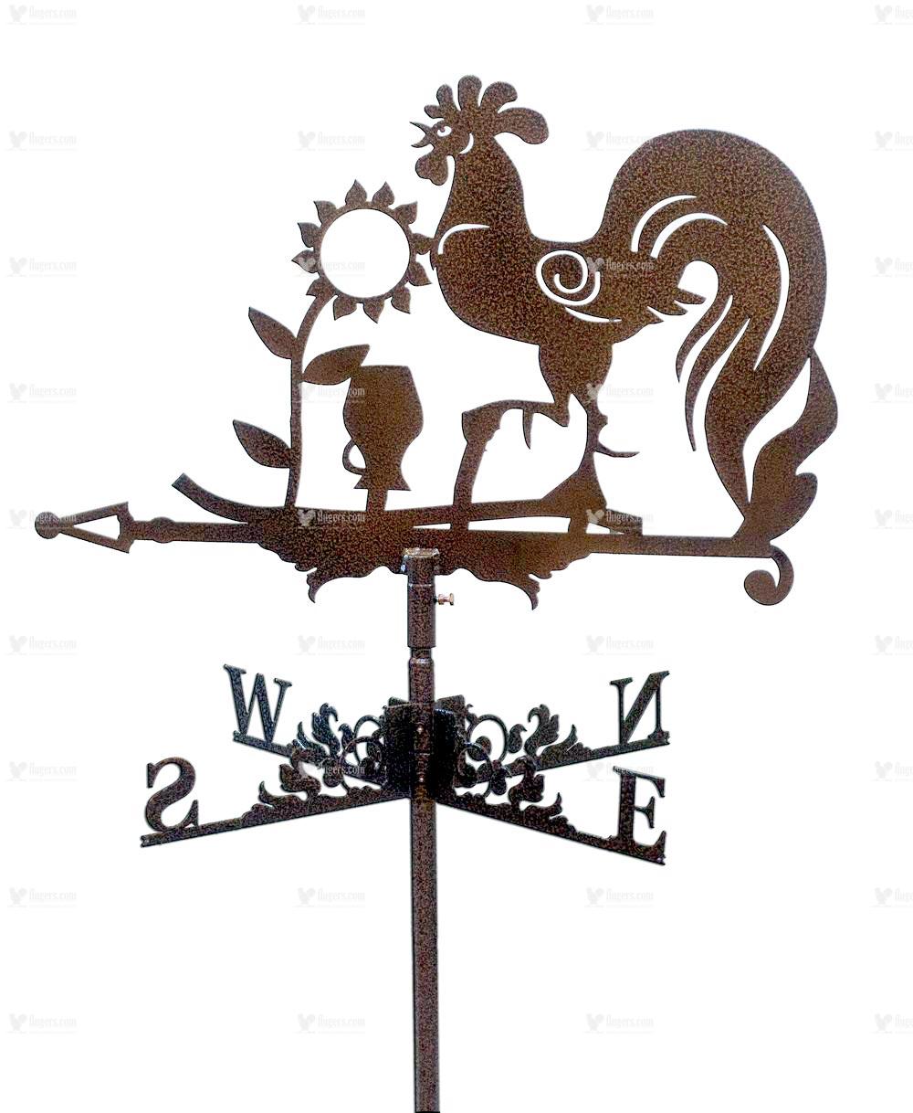 Флюгер на крышу петух на заборе - петух, за то, что поет трижды в день (на восходе солнца, в полдень, на закате) получил эпитет "небесный", является носителем мужского начала, знаком мужской силы "Ян".