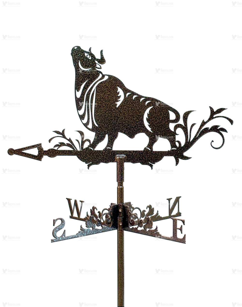 Флюгер на крышу с быком - по славянским преданиям, священный золоторогий Бык-Тур - мощная творческая сила Вселенной, носитель плодородия, символ мужества, храбрости.